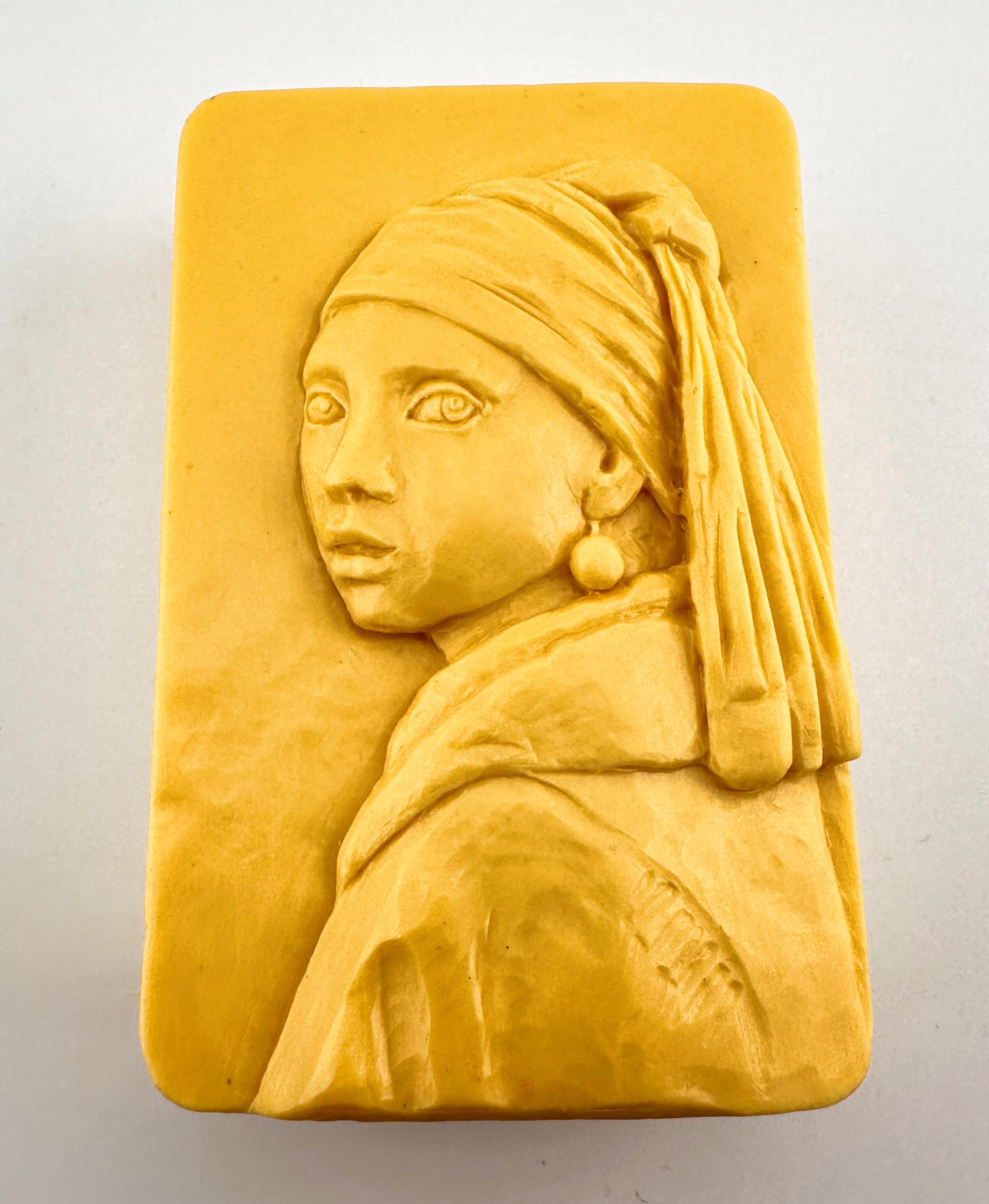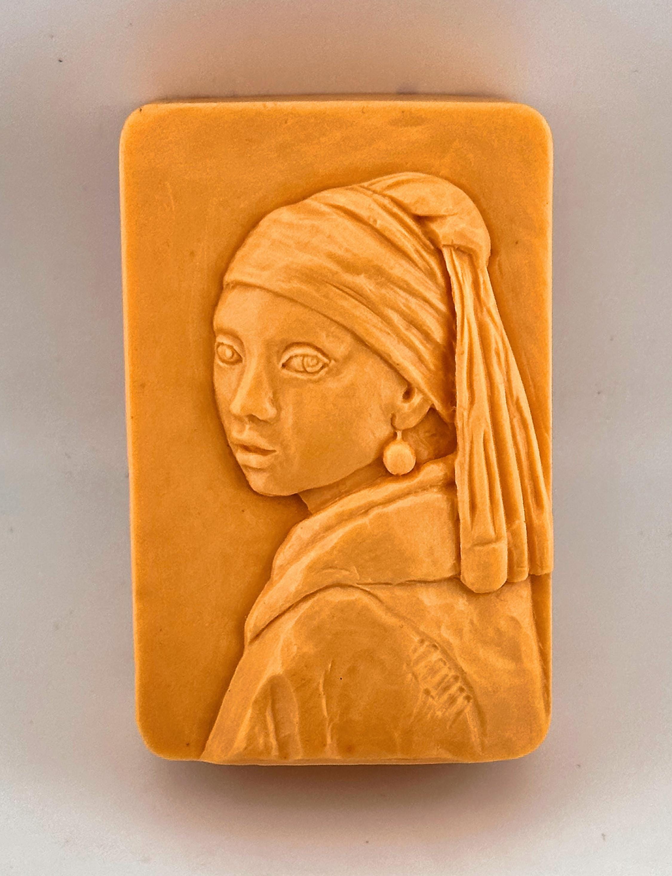 Girl with a Pearl Earring Inspired Soap Mold – Vermeer Art Style Bas Relief 3D Silicone Mold for ,resin, plaster, clay, gypsum, pottery.